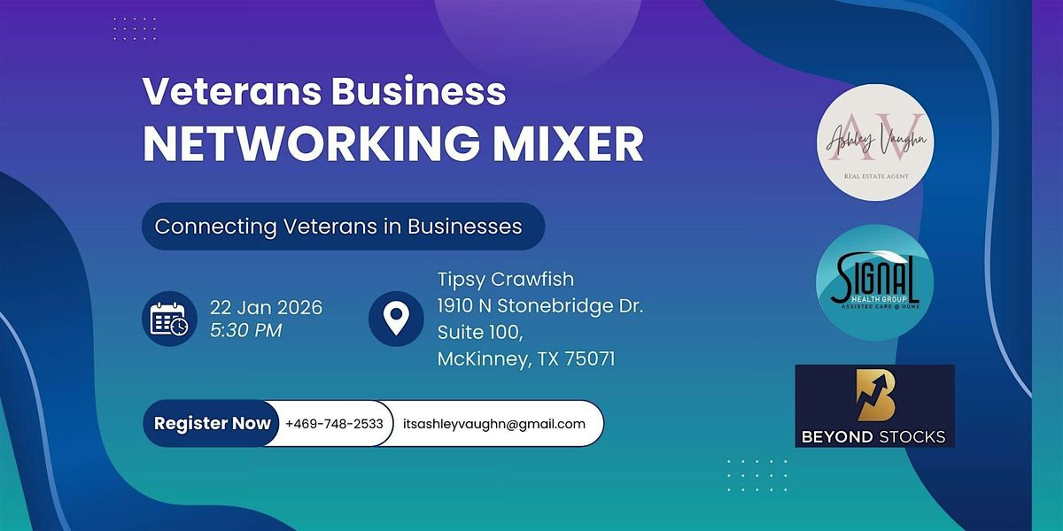 Join us for the second gathering of the Veterans Business Networking Mixer, an event created to bring veteran entrepreneurs and local business owners together for meaningful connection, collaboration, and growth.