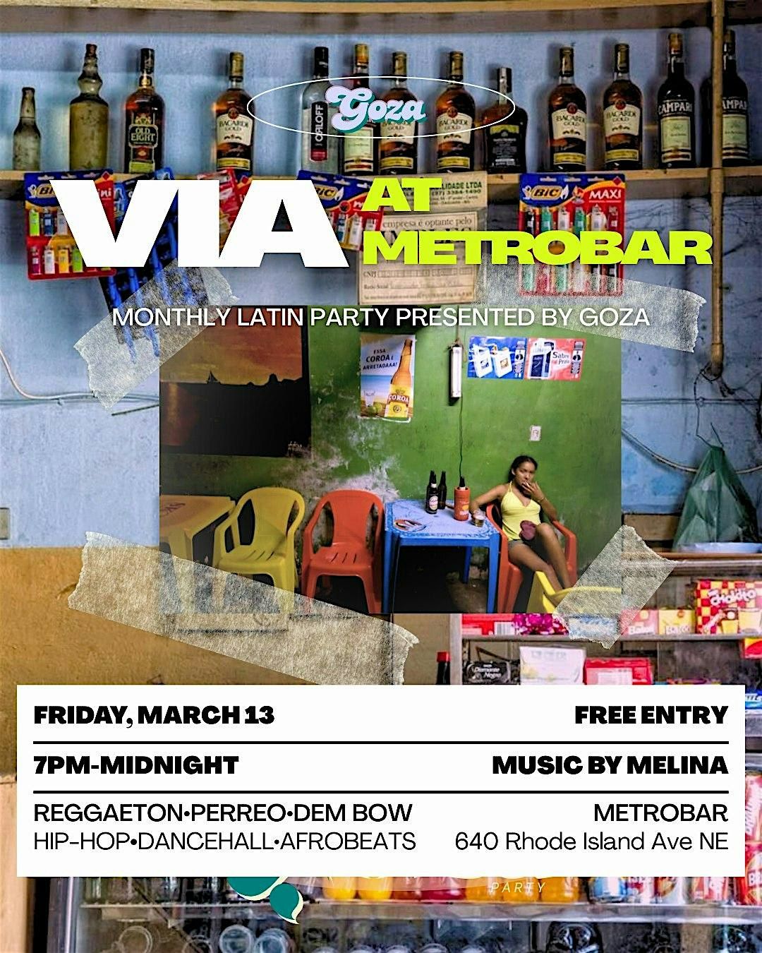 Curated by DJ Melina, Via is a fusion of Afro-Caribbean and Latin music influences intersecting with the sounds that shaped a generation of first-gen Latinos in the DMV. We’re not from here, but we’re not from there either—we exist in the in-between. Raised by immigrants yet deeply shaped by the sounds, style, and cultural influence of Black America—hip-hop, R&B and soul music. At the same time, American pop culture shaped our upbringing—VH1, TRL, and 97.1 FM in DC filled our screens and airwaves, creating the soundtrack of our youth. Goza is a space where our dual identities thrive, where nostalgia meets discovery, and where we dance to the rhythms that define us—and to the music that will define us.