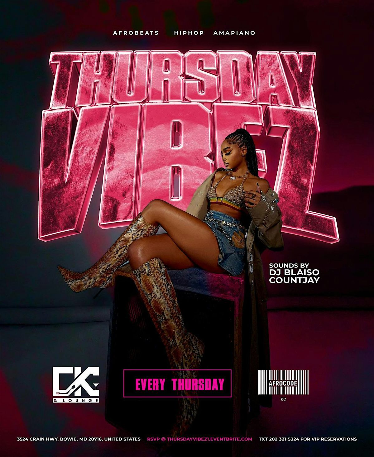 Vibez Thursday is your midweek reset. Come chill or come to dance—it’s your vibe, your pace. Whether you’re posted up scrolling your phone or turning up with the crew, one thing’s for sure: DJ Blaiso and CountJay are spinning the hottest tracks all night long. From Vybz Kartel to Burna Boy, it’s strictly bangers.