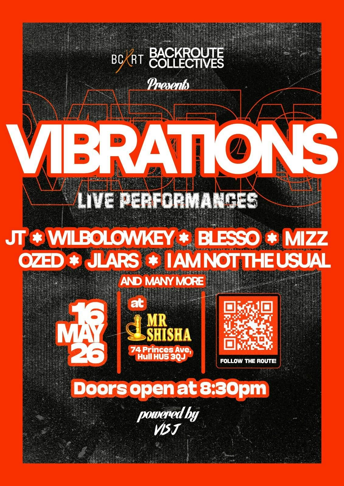 Join us for Vibrations, a live showcase presented by Backroute Collectives. This is a night where raw talent meets diverse sound, a platform for unheard voices in R&B, hip-hop, indie, and soul. Secure your ticket now and be part of this unforgettable night.ย come connect, experience, and let the vibrations move you.Disclaimer: