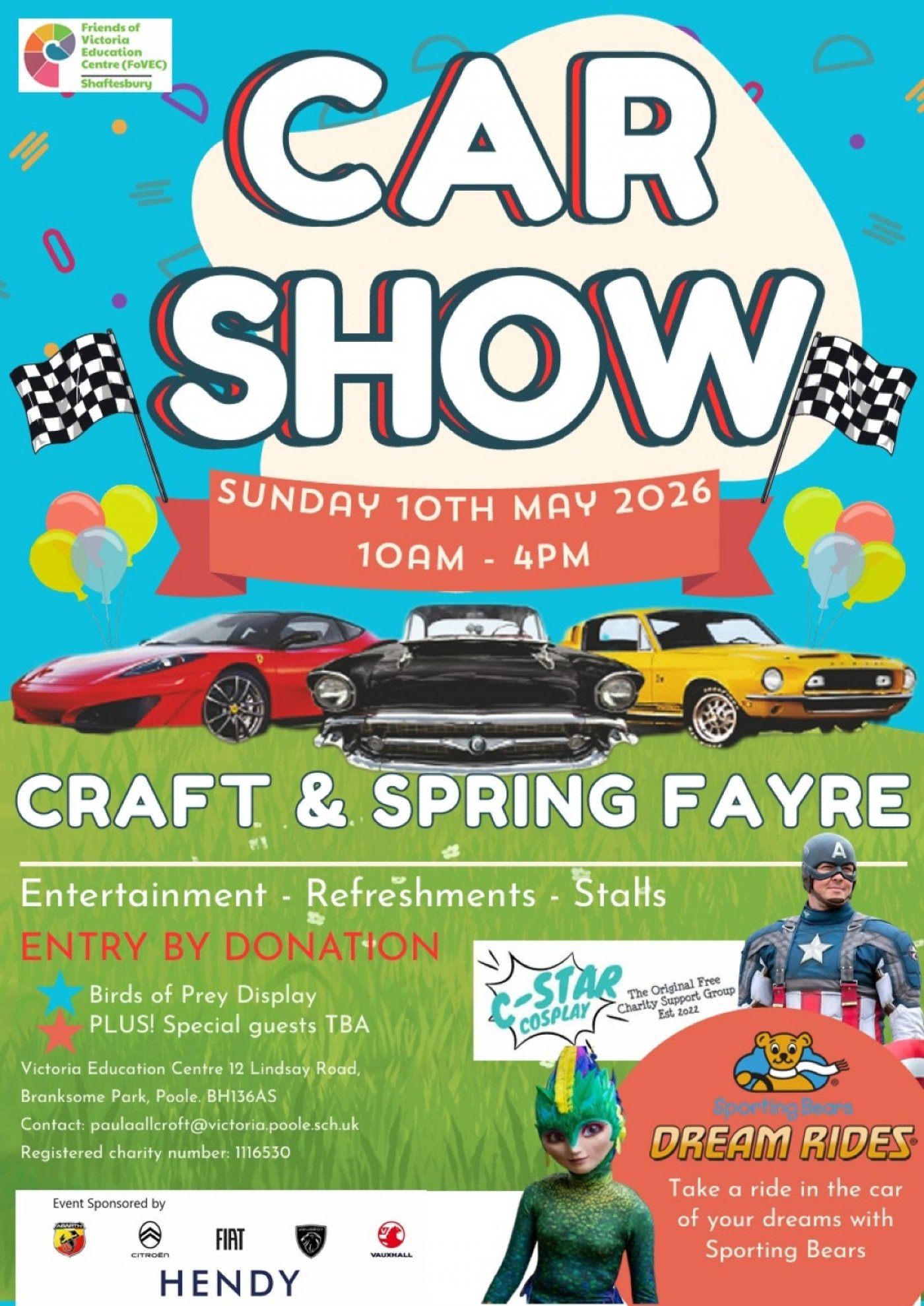 Everything your want from a school summer fair and more! A mix of craft stalls and food with entertainment. With the addition of Dream rides in cars from The Sporting Bears, for a donation, snakes and reptiles to meet and handle, birds of prey to see. Plus much more including our friends from C-Star cosplay - with characters to meet and props to admire.