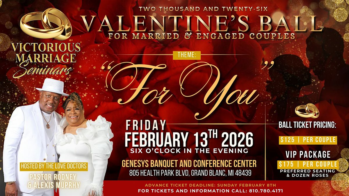 Have you gotten your tickets to the premier Valentine’s event in Genesee County? Join Victorious Marriage Seminars Annual Valentine's Ball on Friday, February 13, 2026 @ 6pm, for an evening of romance with your spouse, celebrating your love. This event, exclusively for married and engaged couples, is semi-formal/black tie, so get dressed up for a fabulous evening! From beginning to end, this event is top-tier! A scrumptous meal, delectable desserts, and an atmosphere to make you fall in love all over again! Every couple gets a printed photo to commemorate the evening.