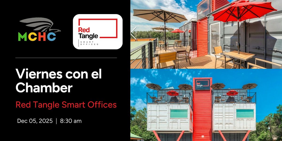 Close out the year with us as we wrap up 2025 with our Viernes con el Chamber events at Red Tangle Smart Offices. To learn more about Red Tangle, you can go to https://www.redtanglespaces.com