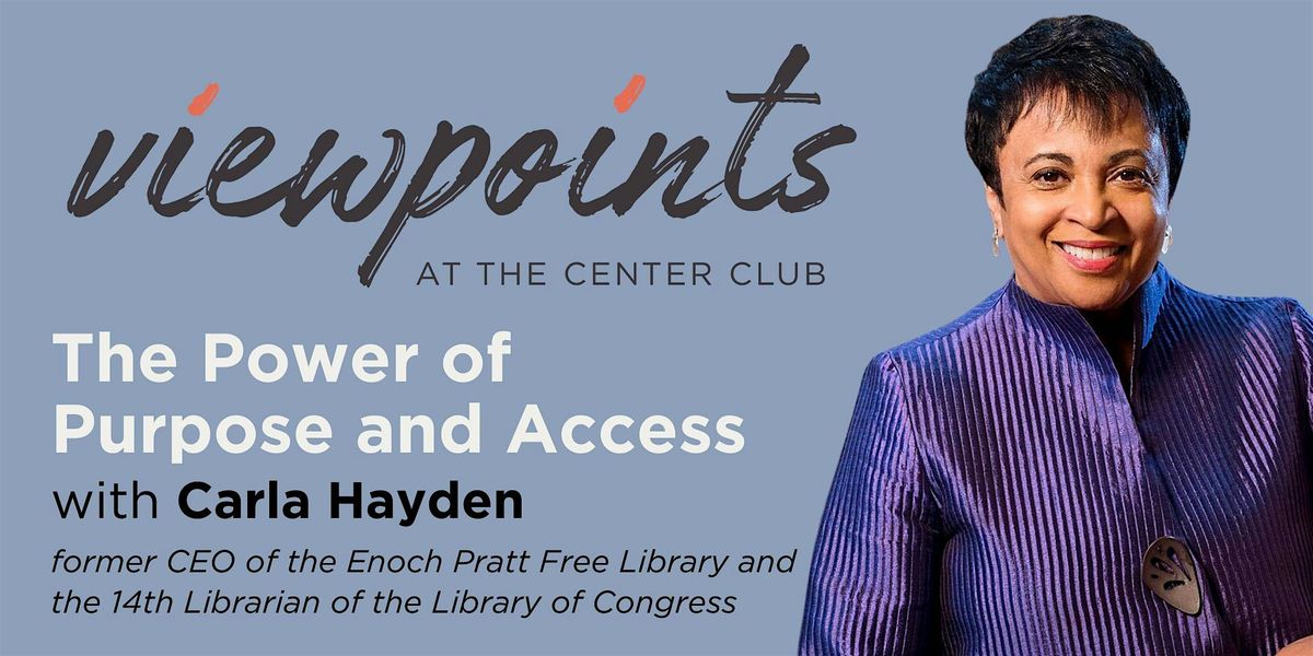 The Center Club is thrilled to welcome back Carla Hayden, former CEO of the Enoch Pratt Free Library and the 14th Librarian of the Library of Congress. Currently serving as a senior fellow at the Andrew W. Mellon Foundation, Dr. Hayden continues to champion equitable access to information and the transformative power of libraries in communities nationwide. In this special program, she will reflect not only on her remarkable career, but also on the personal convictions that have guided her work—what inspires her enduring commitment to public service and access for all. Attendees can expect an engaging and thoughtful conversation that blends insight, experience, and the passion that continues to drive her mission.
