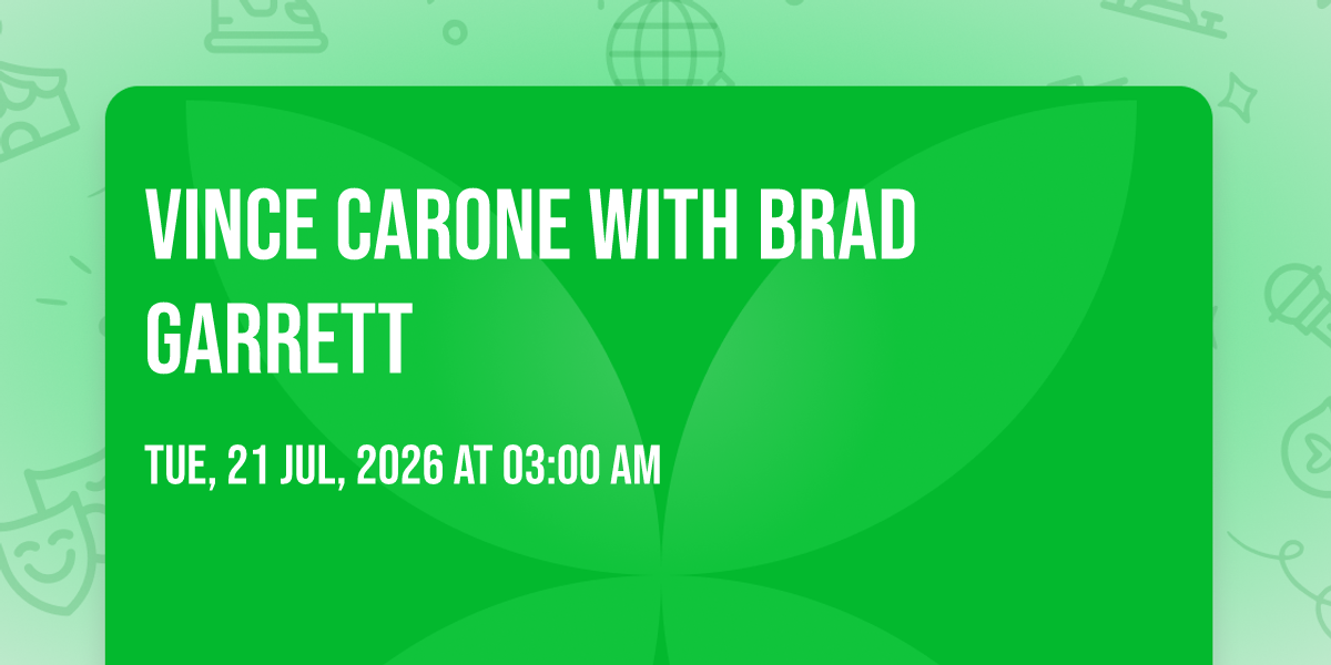 π Location: 36.1022, -115.17β¨ Enter a world of endless possibilities at Vince Carone with Brad Garrett, where every moment tells a story! ποΈ The stunning Brad Garrett Comedy Club at MGM Grand Hotel and Casino in vibrant Las Vegas, NV transforms into a realm of wonder on July 27th, 2026 at 03:00 AM. π They have crafted an experience that goes beyond the ordinary, combining elements of surprise, delight, and pure entertainment. Every detail has been thoughtfully considered to ensure your journey with us is nothing short of extraordinary. π― Join fellow adventure seekers and memory makers in this celebration of imagination and innovation. π Reserve your spot today and be part of something truly special!