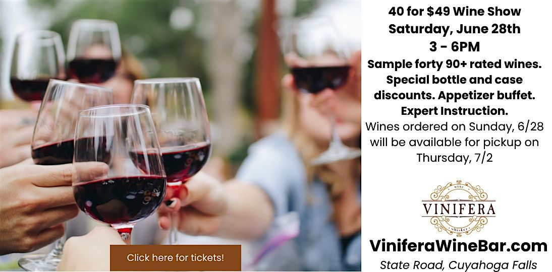 Welcome wine enthusiasts! 🍷 Join us at Vinifera Wine Bar for Vinifera's Summer Wine Show on June 28, 2026 at 3:00 PM. Get ready to sip, swirl, and savor a selection of exquisite wines in a cozy and inviting atmosphere. Whether you're a seasoned sommelier or just starting to explore the world of wine, this event is perfect for everyone! Don't miss this opportunity to discover new favorites and enjoy a delightful evening with fellow wine lovers. See you there!