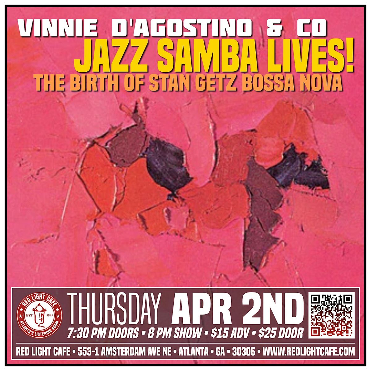 The stellar band includes Vinnie D'Agostino on sax (Joe Gransden, Jiva), Dave Frackenpohl on guitar (GSU faculty), Emrah Kotan on drums (Andy Nevala Quartet, India.Arie), and Craig Shaw on bass.