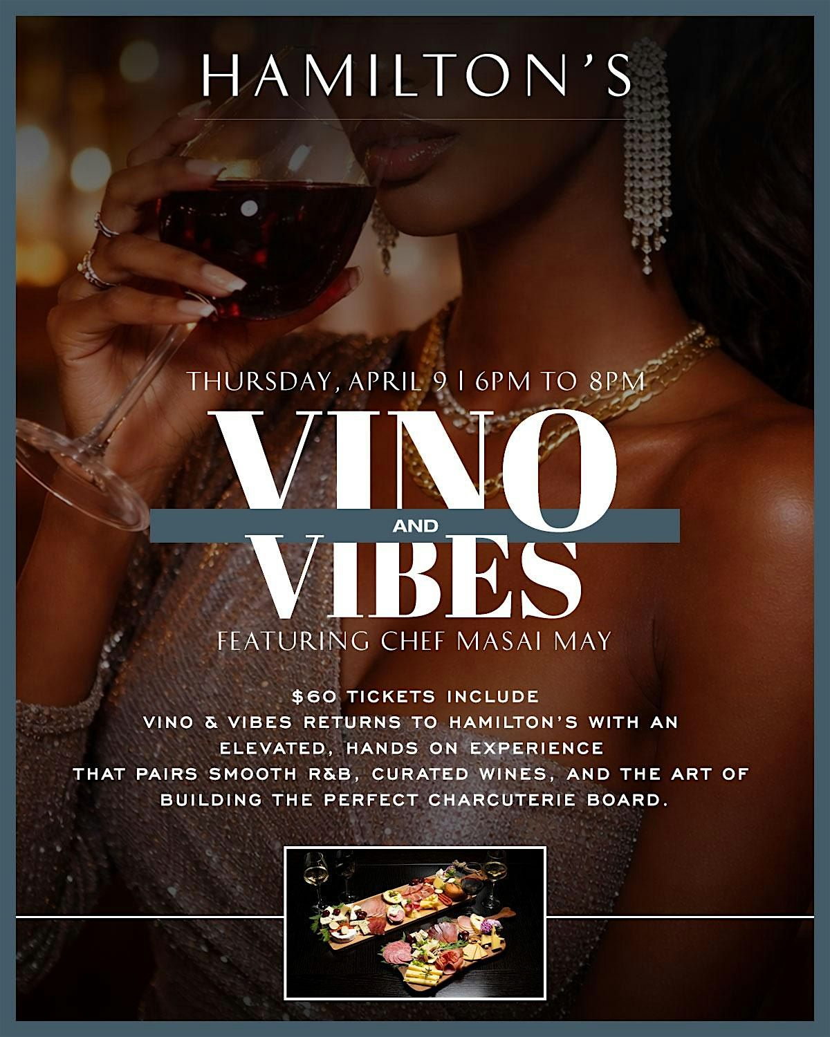This elevated, hands-on night blends smooth R&B, curated wines, and the joy of building a beautiful charcuterie board you’ll actually want to show off. Join Chef Masai May for a guided experience where you’ll learn how to layer cheeses, pair flavors, and style a board that hits every note.