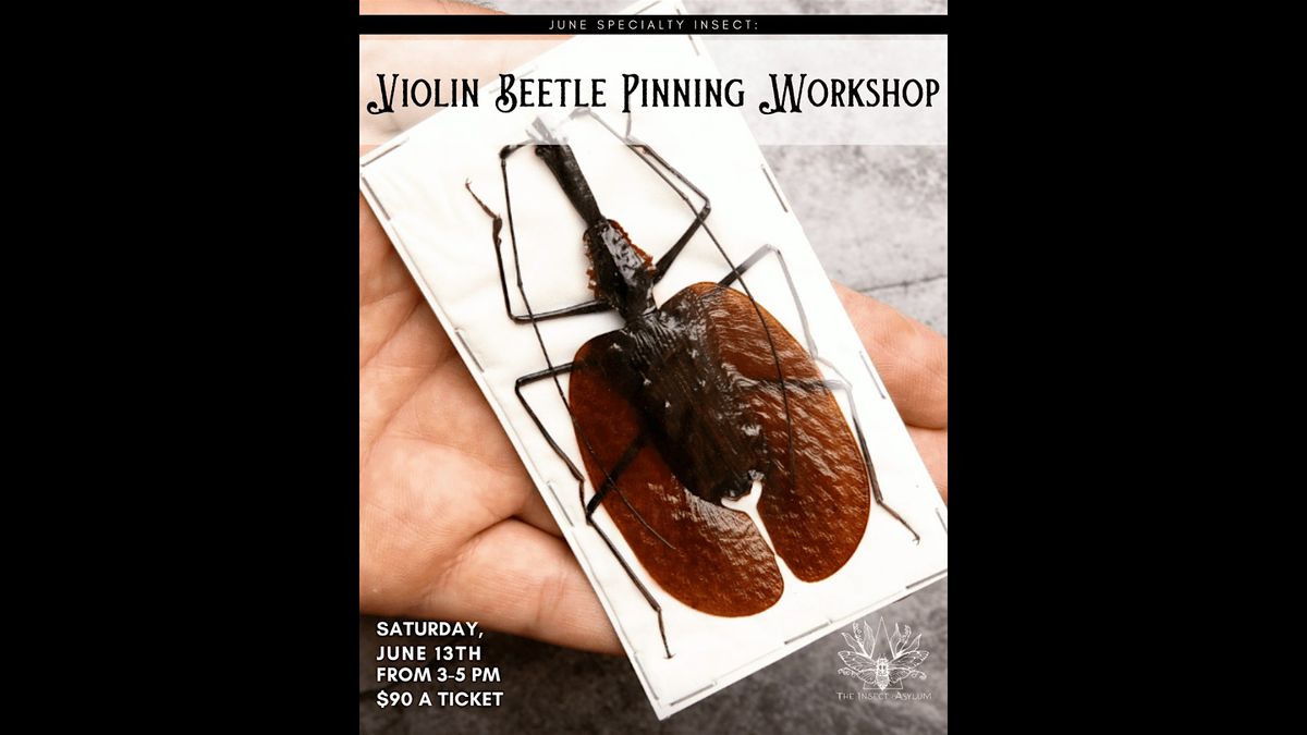 All materials are provided, so you only need to bring your curiosity! At the end of the workshop, you'll take home your beautifully pinned violin beetle—a perfect addition to any collection or display.