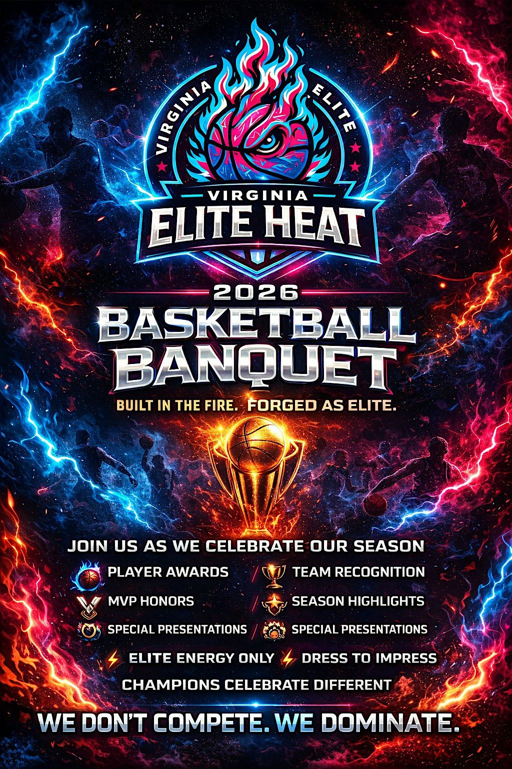 Join us for an unforgettable evening as we celebrate the hard work, growth, and accomplishments of our VA Elite Heat athletes! This special night is dedicated to honoring our players, coaches, and families who made this season one to remember.