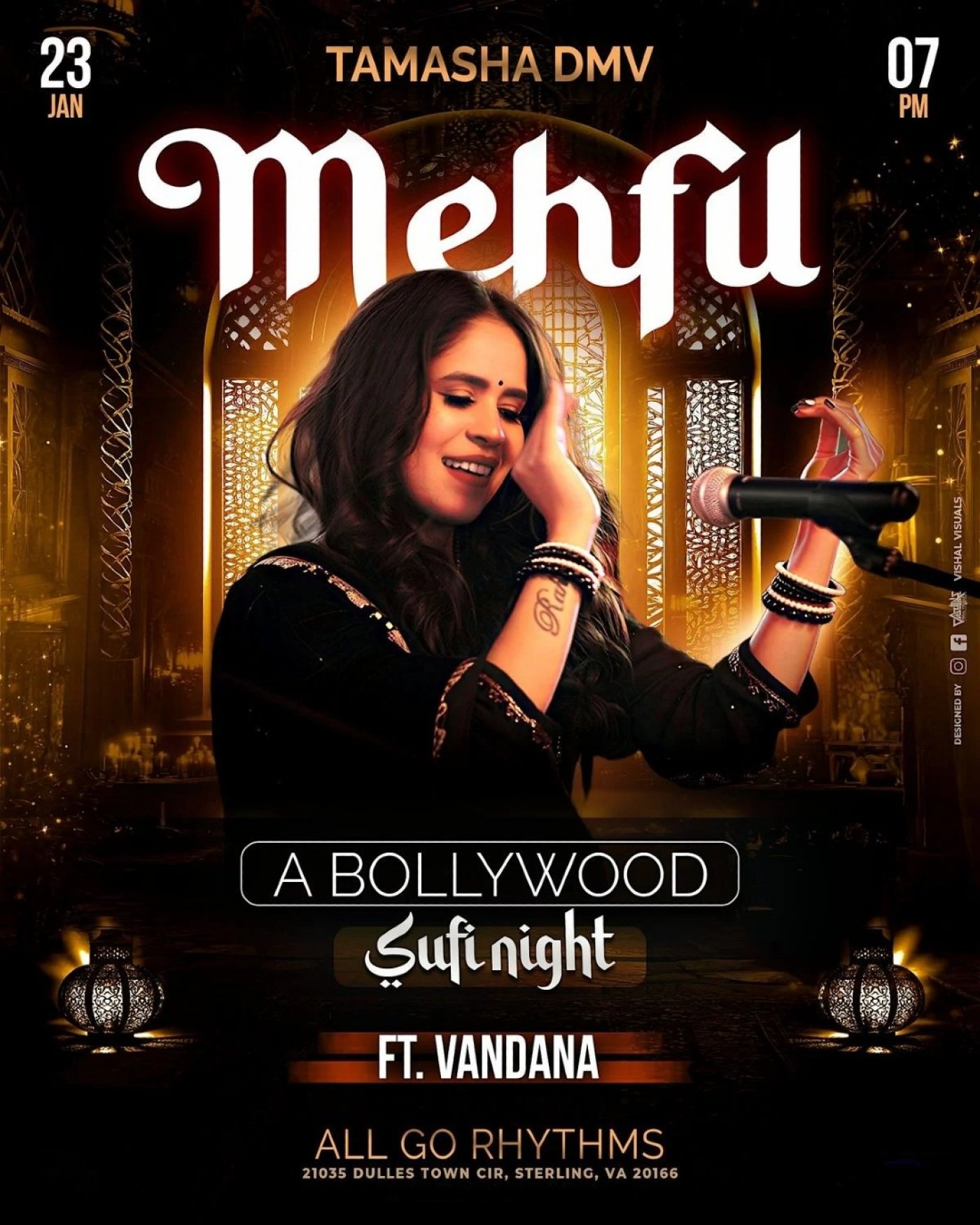 Bringing our signature Mehfil to Virginia on Jan 23rd- a magical evening of Bollywood and Sufi music! Ft. Vandana.