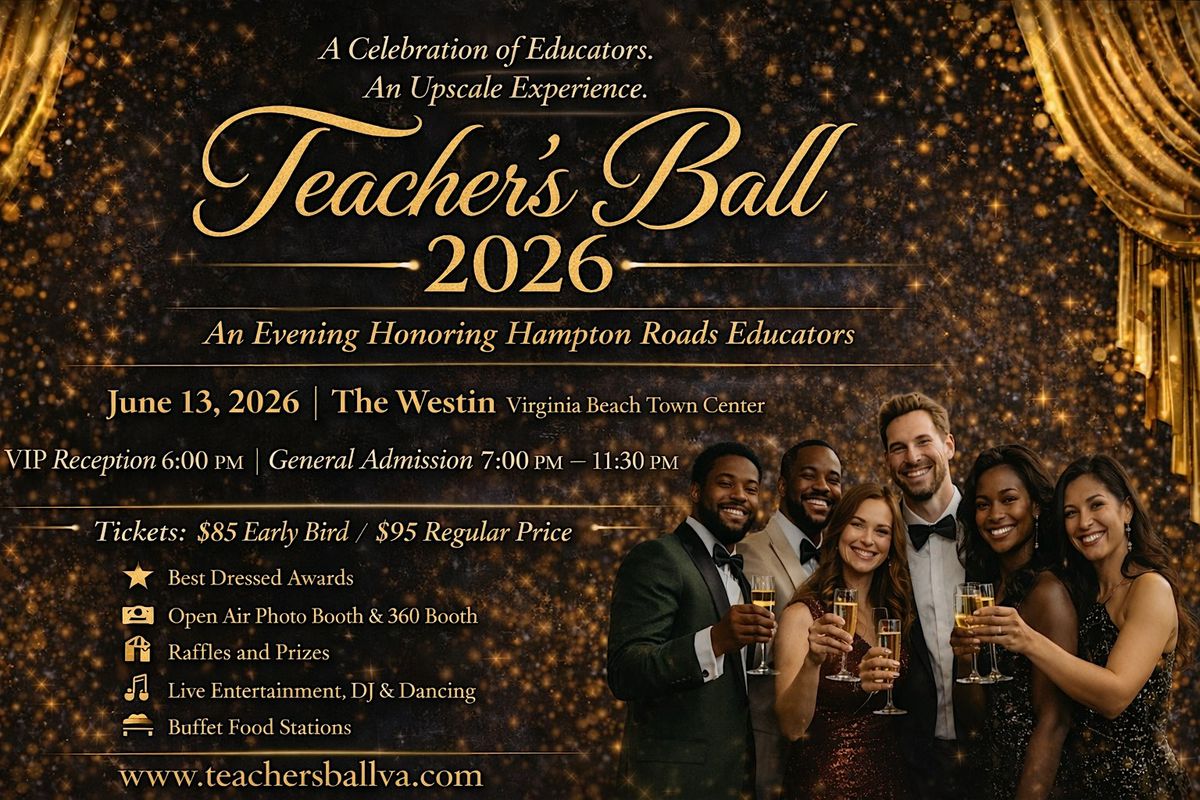 Step into an unforgettable evening honoring the educators who shape and strengthen our communities every day. et in the heart of The Westin Virginia Beach Town Center, the ballroom will transform into a sophisticated, high-energy celebration filled with elegance, inspiration, and meaningful connection. Surrounded by the vibrant Town Center district—just steps from premier dining, shopping, and the Sandler Center for the Performing Arts—guests will experience an unforgettable evening in one of the area’s most distinctive venues. The Westin’s elegant Monarch Ballroom will host the 2026 Teacher's Ball. This is more than a gala — it’s a celebration of impact. ⭐
