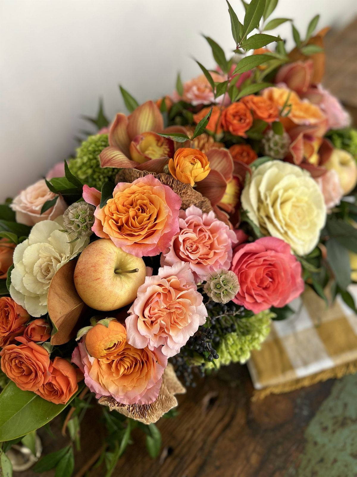 Each class revolves around a theme or type of flower. For example, ‘peonies’ or ‘jewel toned blooms’. The images on our website are representative of what a design might look like, but are not exact. In order to get you the best product, we hold off on ordering until a week before class to see the best product that is available from our wholesalers. In classes that revolve around a certain flower, such as peonies, you can expect to be making a mixed bouquet highlighting that flower.