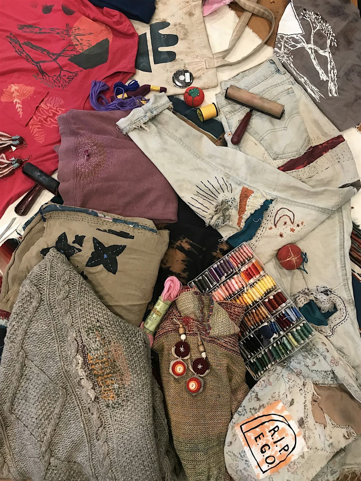 There are a million different ways you can customize your clothing to make it more artful, more fun, last longer, repair it, and otherwise reimagine it. In this class, we will focus on visible mending techniques like darning, embroidery, applique, patches, and more. We'll also look at creative ways to alter garments using surface design techniques and destruction/frankensteining. Bring your own mending pieces to work on!