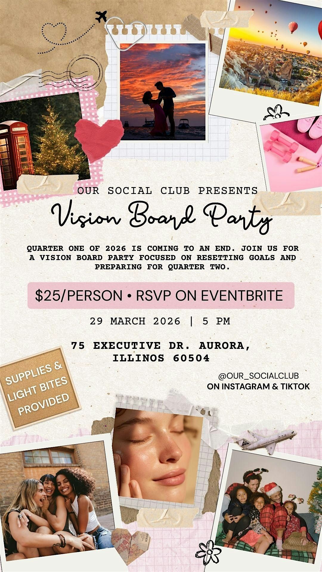 Join Our Social Club for an inspiring, coed Vision Board Party designed to help you reflect on the first few months of the year and intentionally prepare for Quarter Two. Whether you crushed your goals or need a fresh start, this space is for you.