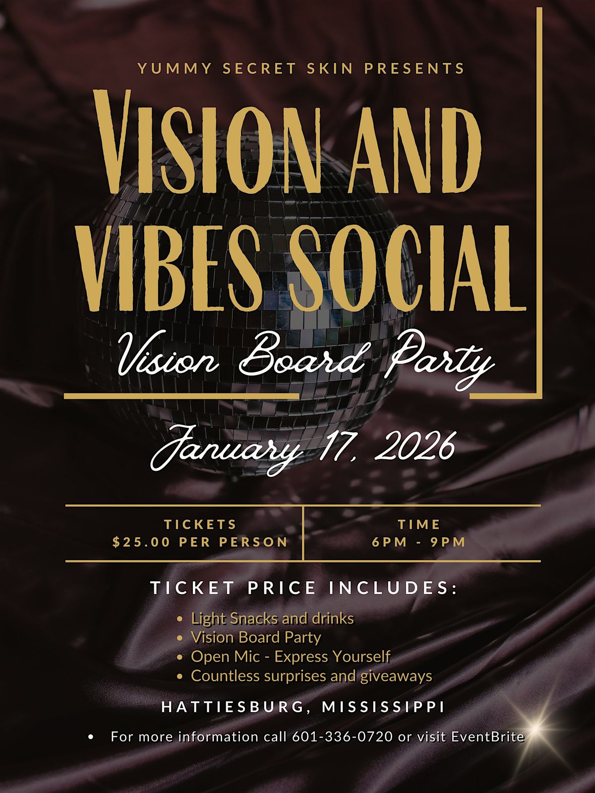 This 25+ social club gathering is a space to vibe, connect, and celebrate. We’ll reflect on our 2025 wins while affirming our 2026 vision and accountability—through creativity, conversation, and community. Whether you’re crafting your vision board, sharing words on the mic, or simply soaking in the energy, this night is about expression, alignment, and meeting new friends in a relaxed, intentional setting.