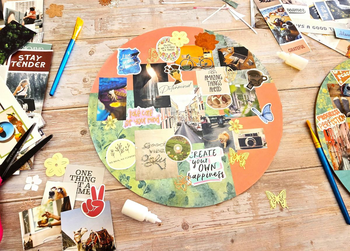 Design your 14” wooden vision board using provided materials in a relaxed, playful environment.