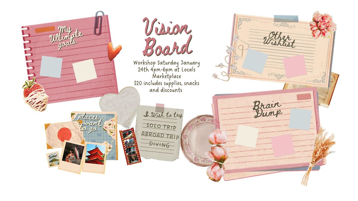 Welcome to the Vision board workshop happening at Locals Marketplace on January 24, 2026 at 4:00 PM (Eastern Time)! Join us for a fun and creative session where you can visualize your goals and dreams. Let's gather together to cut, paste, and create vision boards that inspire us. Get ready to manifest your desires and set intentions for the future. No artistic skills required, just bring your enthusiasm and an open mind. See you there!