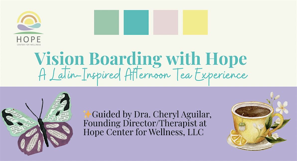 Join us for our relaxing and fun Vision Boarding with Hope event where we will create our 2026 vision boards while connecting with one another, enjoying delicous delicacies from a Latin-inspired afternoon tea menu, and share best strategies to make plans that stick. Whether you're a seasoned manifestor and vision boarder or new to the practice, this event is for you!