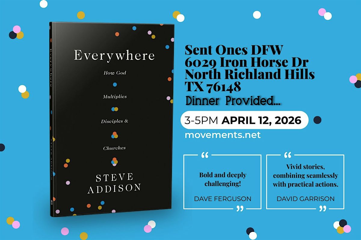 Do you have a vision to multiply disciples and churches from DFW to the nations? Then join us for prayer, worship, biblical vision, food, testimonies from author, podcaster, and missionary Steve Addison.