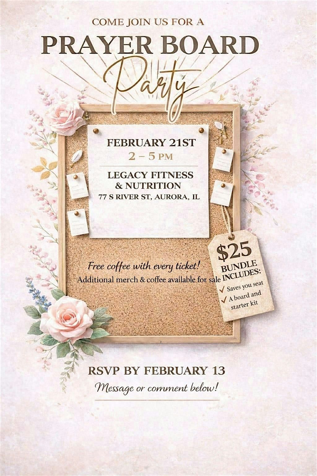 Welcome to the Prayer Board Party happening at Legacy Nutrition & Fitness on February 22, 2026 at 2:00 PM (Central Time)!