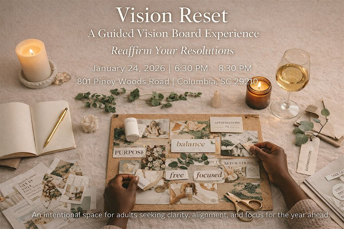 Vision Reset: Reaffirm Your Resolutions is an intentional, guided vision board experience designed to help you slow down, refocus, and move forward with clarity.