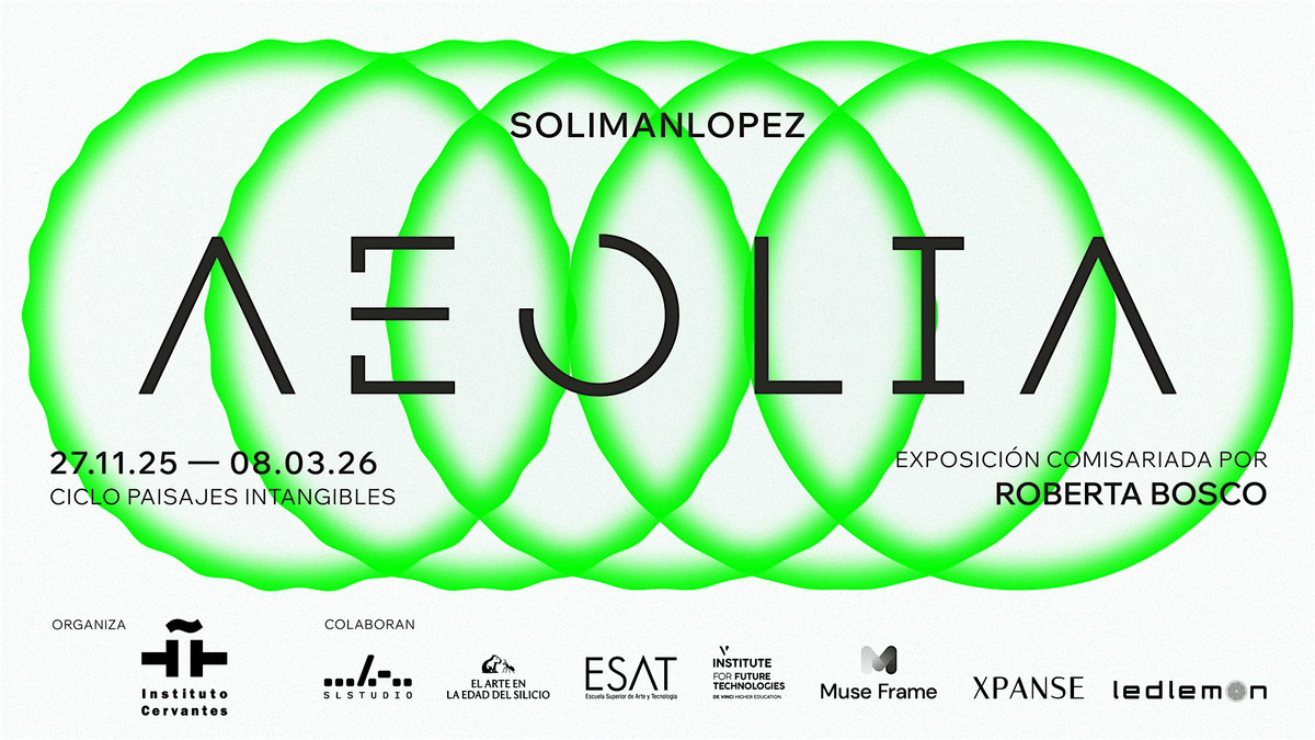 El Instituto Cervantes presenta «Aeolia», del artista conceptual Solimán López, comisariada por Roberta Bosco. La muestra inaugura el ciclo «Paisajes intangibles» y constituye la primera propuesta de Banca Cervantes, nuevo espacio y laboratorio de arte, pensamiento, lengua y cultura digital.
