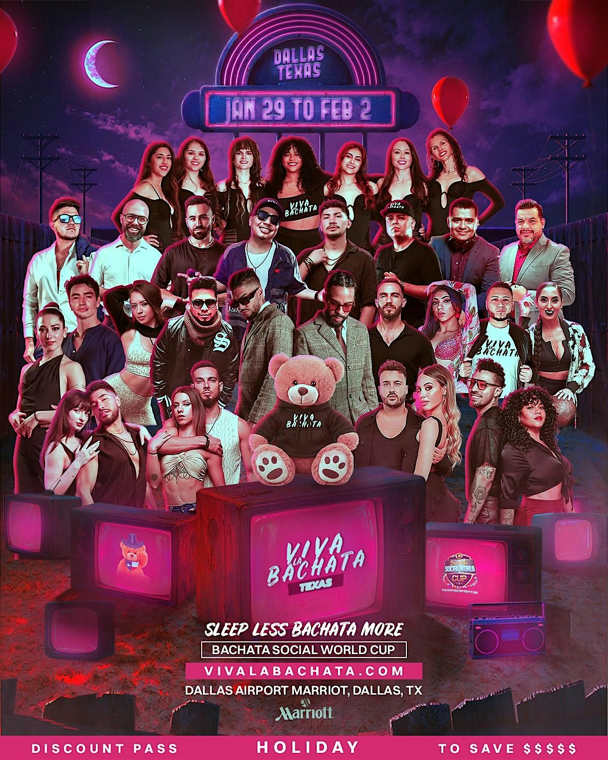 and many moreWe are taking over The Dallas/ForthWorth Airport Marriot and dancing BACHATA from Thursday January 29 to Monday February 2, 2025.