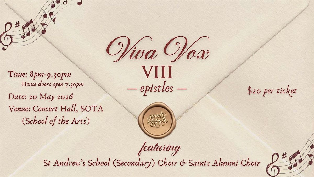 VIVA VOX VIII is a choral concert organized by Saints Chorale from St Andrew's Junior College, featuring St. Andrew’s School (Secondary) and the Saints Alumni Choir.