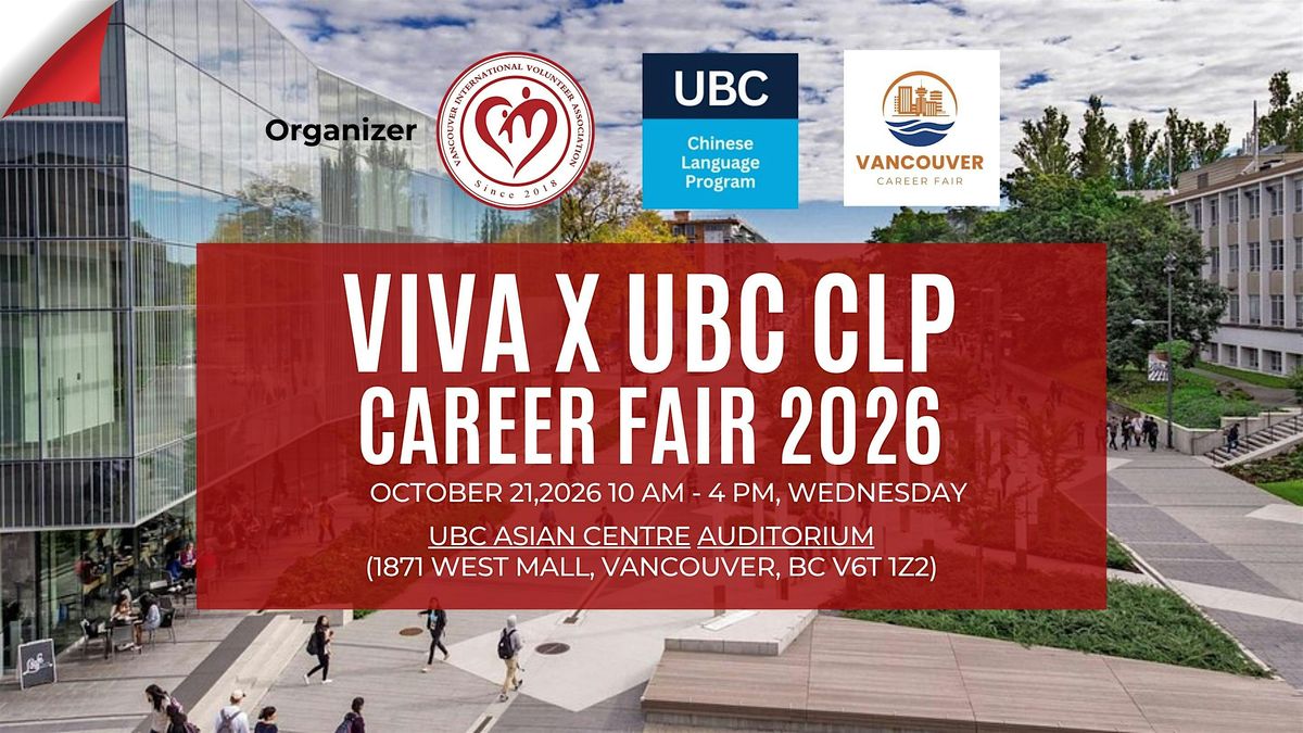 Join us at the VIVA x UBC Chinese Language Program (CLP) Career Fair 2026 on October 21, 2026, at the University of British Columbia (UBC)! This event is open to UBC students, recent graduates, and the general public, bringing together top employers, industry experts, and aspiring professionals under one roof.