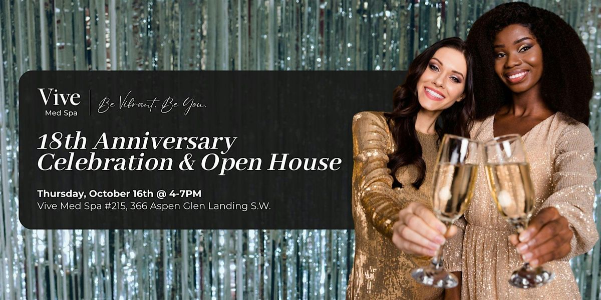 Celebrate 18 Years of Self-Care, Confidence & Community at our Vive 18th Anniversary Celebration & Open House! ✨ Meet the Vive Team, and learn how we can support you on your self-care journey to achieve your version of radiance both inside and out. Learn about the Vive VIP Community to unlock year-round perks, members-only savings, and exclusive experiences designed to empower your best self.