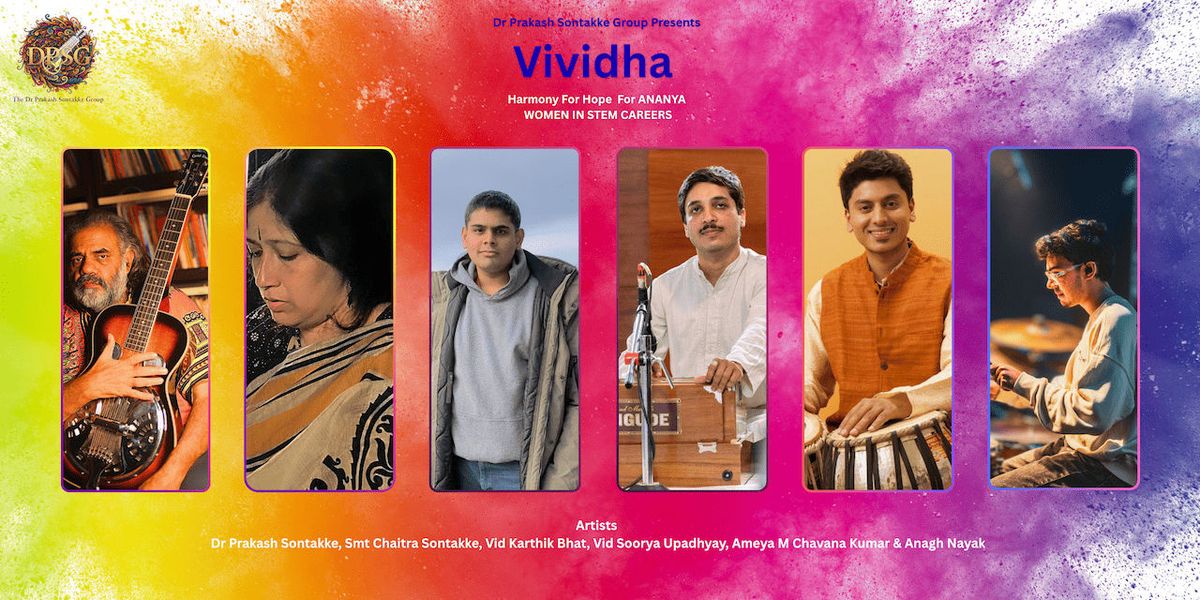 Vividha is more than a concert; it's a celebration of creative collaboration and a tribute to the power of music and education. This event aims to demonstrate how Indian classical music forms the foundation for various genres, from Hindustani and Carnatic to jazz and progressive styles. We will also share the inspiring impact stories of graduates from Ananya, a non-profit organization dedicated to empowering girls through skills training, scholarships, and mentorship since 2013.