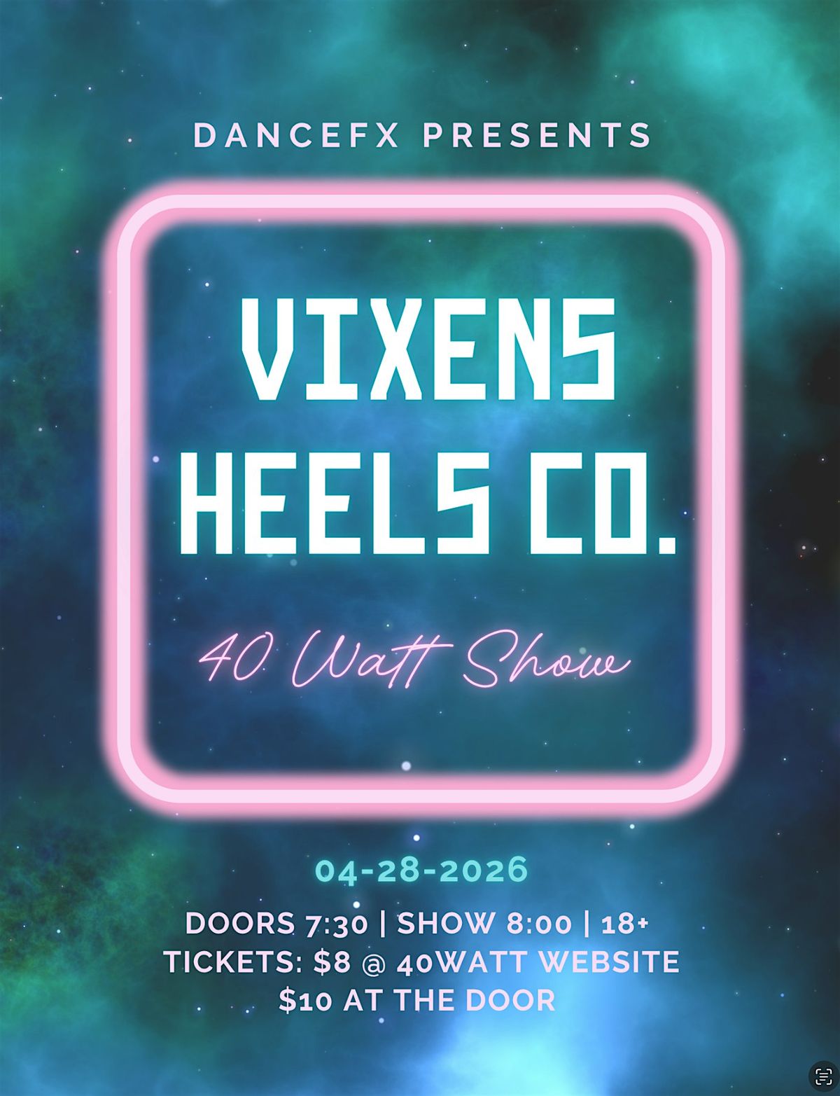 Vixens Heels Co. Doors 7:30 PM - Show 8:00 PM
