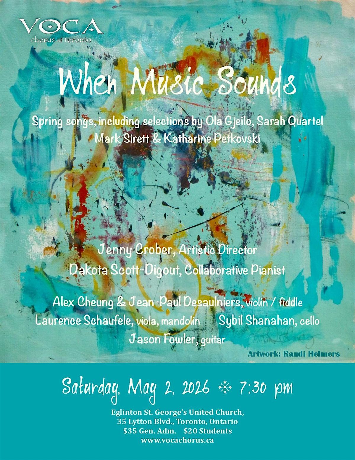 VOCA presents "WHEN MUSIC SOUNDS": Sat., May 2, 7:30 pm