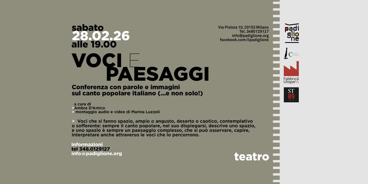 > Voci che si fanno spazio, ampio o angusto, deserto o caotico, contemplativo o sofferente: sempre il canto popolare, nel suo dispiegarsi, descrive uno spazio, e uno spazio è sempre un paesaggio complesso, che si può osservare, capire, interpretare anche attraverso le voci che lo percorrono.