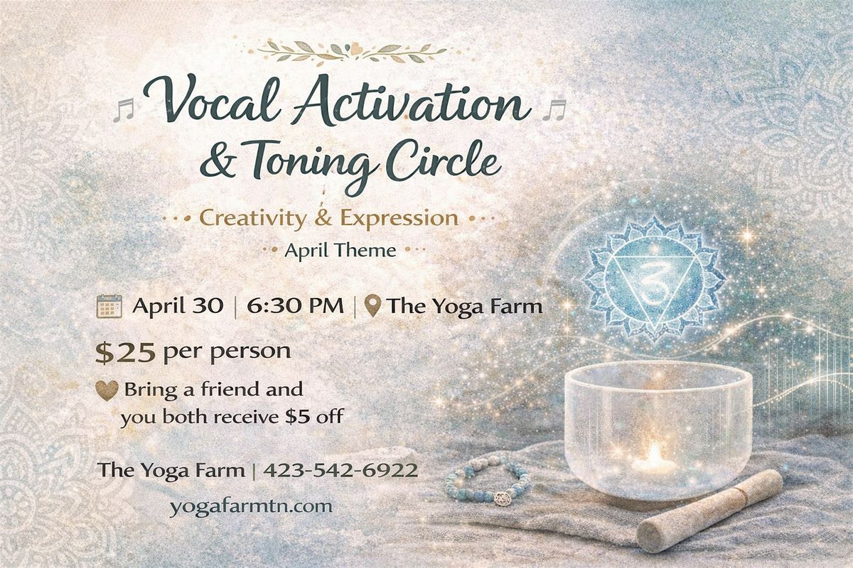 Voice Activation & Toning CircleYour voice is one of your most powerful healing tools. Join us for a nurturing and transformative Voice Activation & Toning Circle, where we’ll explore sound, breath, and vibration to awaken your authentic voice and reconnect with your inner expression.This gentle, supportive circle invites you to use your voice through toning, chanting, and intuitive vocal expression—no singing experience required. Together, we’ll create a safe space to release tension, open energetic pathways, and allow sound to move freely through the body.Through guided breathwork, vocal toning, and shared resonance, you’ll experience how vibration can calm the nervous system, support emotional release, and activate self-expression and confidence.What to Expect: