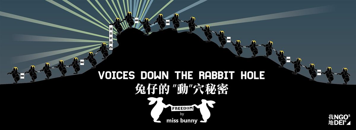 đVoices Down The Rabbit Hole is an art exhibition by Hong Kong artist Miss Bunny, inspired by the timeless narrative of Watership Down by Richard Adams. Through this project, Miss Bunny seeks to explore the profound connections between Adams' story of a group of rabbits struggling to survive and the contemporary socio-political struggles of Hong Kong.