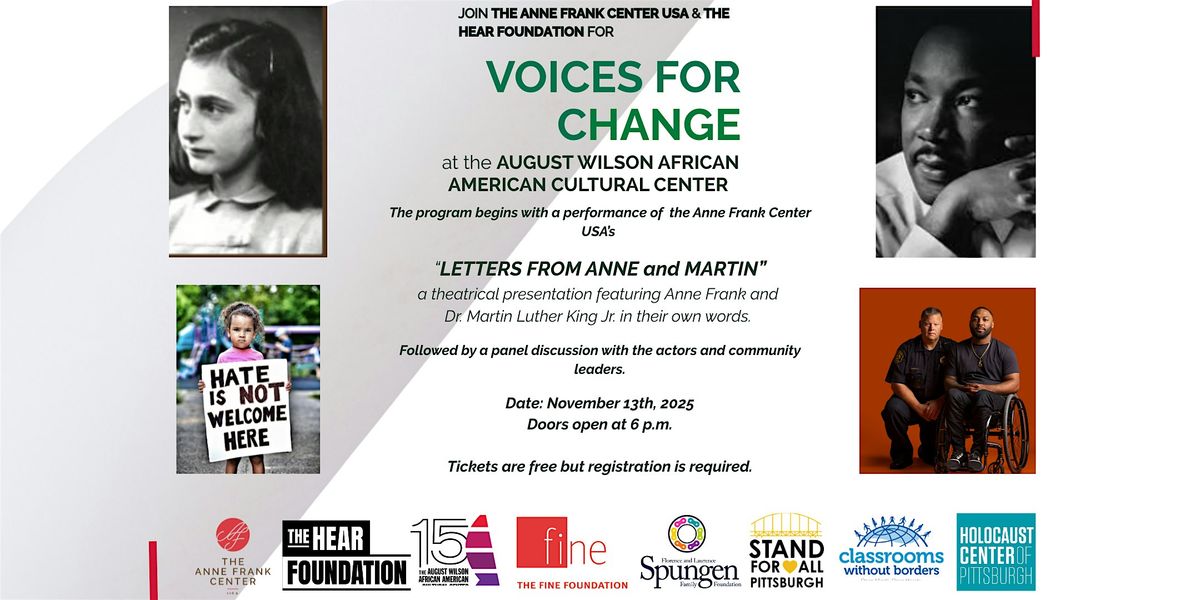 The program begins with a performance of the Anne Frank Center USA’s Letters from Anne and Martin followed by a panel discussion.About this Event