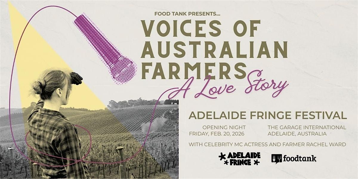 Fresh off the sold-out success of Food Tank's A Night Honoring Our Farmers, led by Oscar nominee Stephanie Hsu at Climate Week NYC, Food Tank is bringing Voices of Australian Farmers: A Love Story to the Adelaide Fringe Festival. Rooted in love of land, love of soil, and love of community, the evening blends unscripted farmer stories with live music and delicious tasting moments that bring each story to life. Hosted by Rachel Ward, it’s an intimate celebration of the people who care for the land and feed us, day in and day out, following the sold-out 28-performance run of Food Tank’s immersive original musical about the climate crisis, WeCameToDance, at the Edinburgh Fringe—featured on Good Morning Britain, the BBC, and praised by The New York Times.