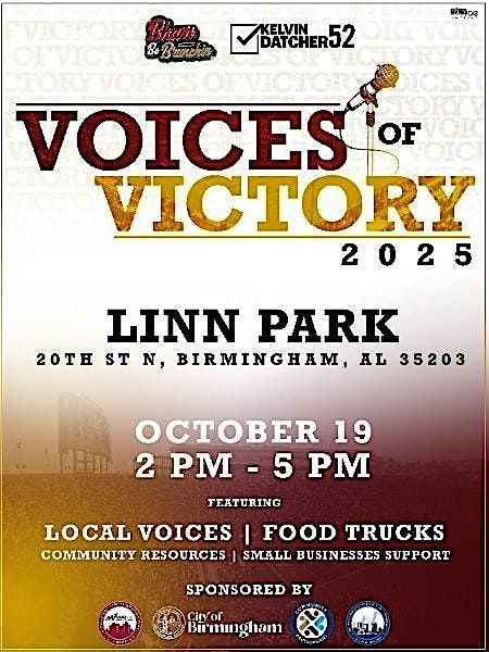 Come join us at Linn Park for an unforgettable event celebrating triumph and success! VOICES OF VICTORY will showcase inspiring stories of overcoming challenges and achieving greatness. Hear from motivational speakers, enjoy live performances, and connect with a community of like-minded individuals. Don't miss out on this opportunity to be uplifted and empowered. See you there!