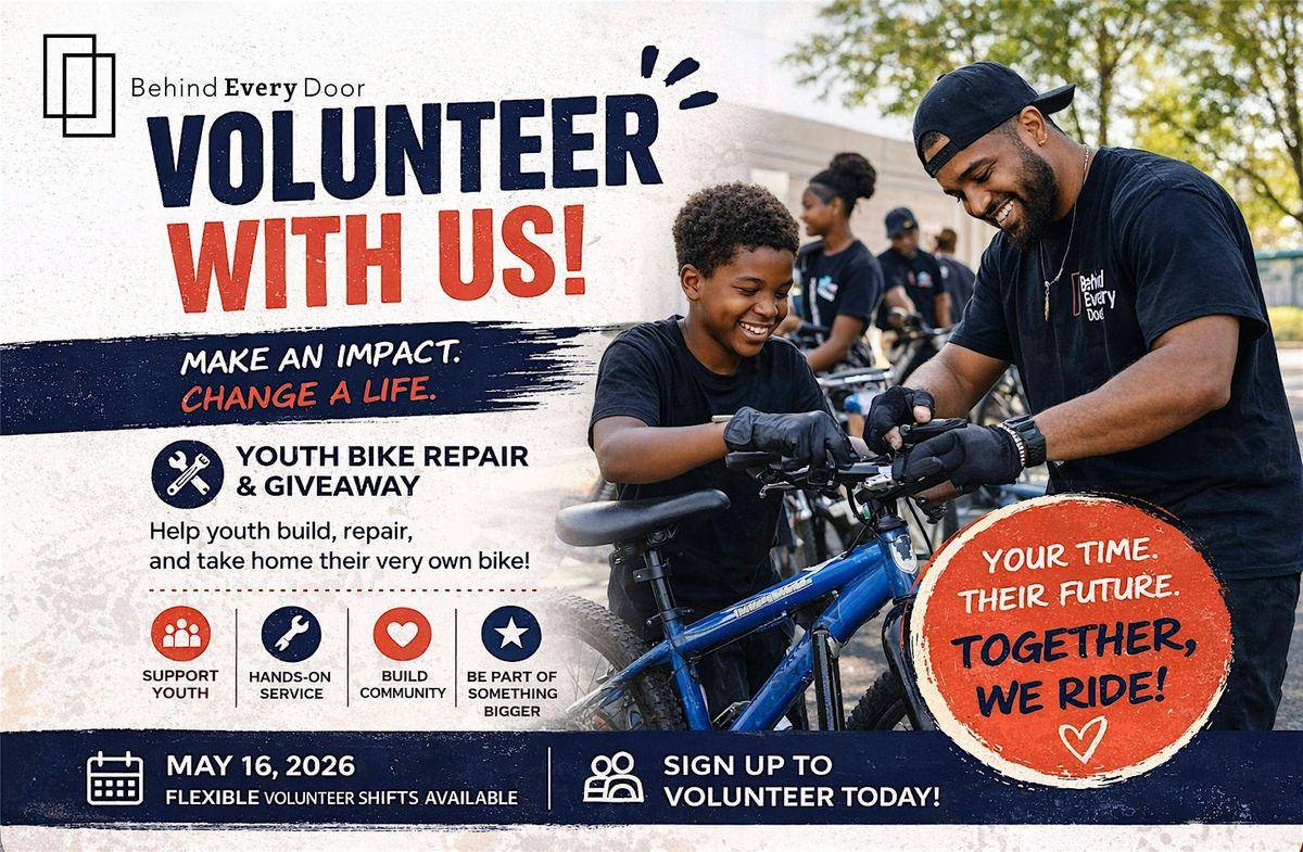 Volunteer Opp: Youth Bike Repair & Giveaway Hosted by Behind Every Door