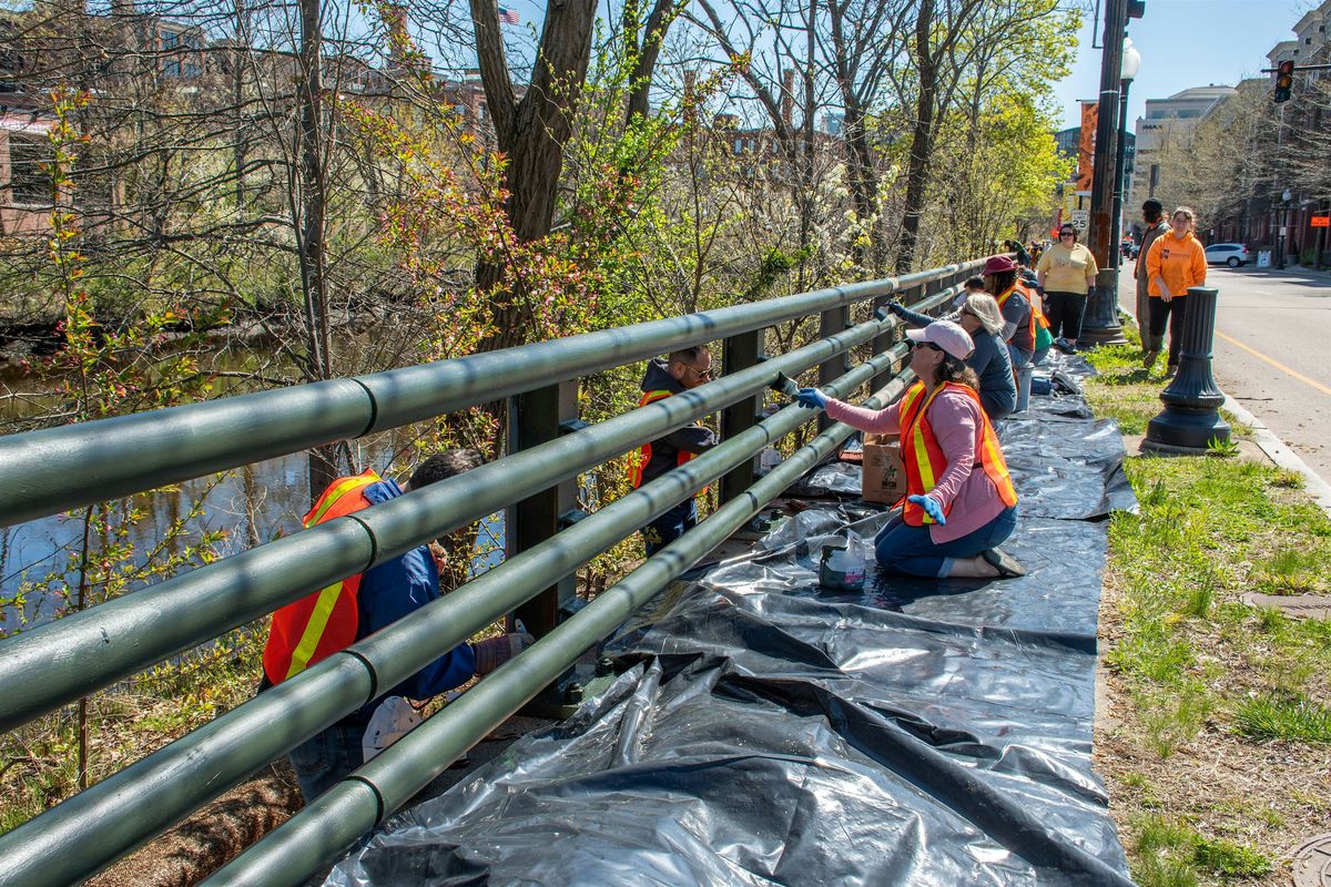 Volunteer Rail Painting on the Woonasquatucket River Greenway