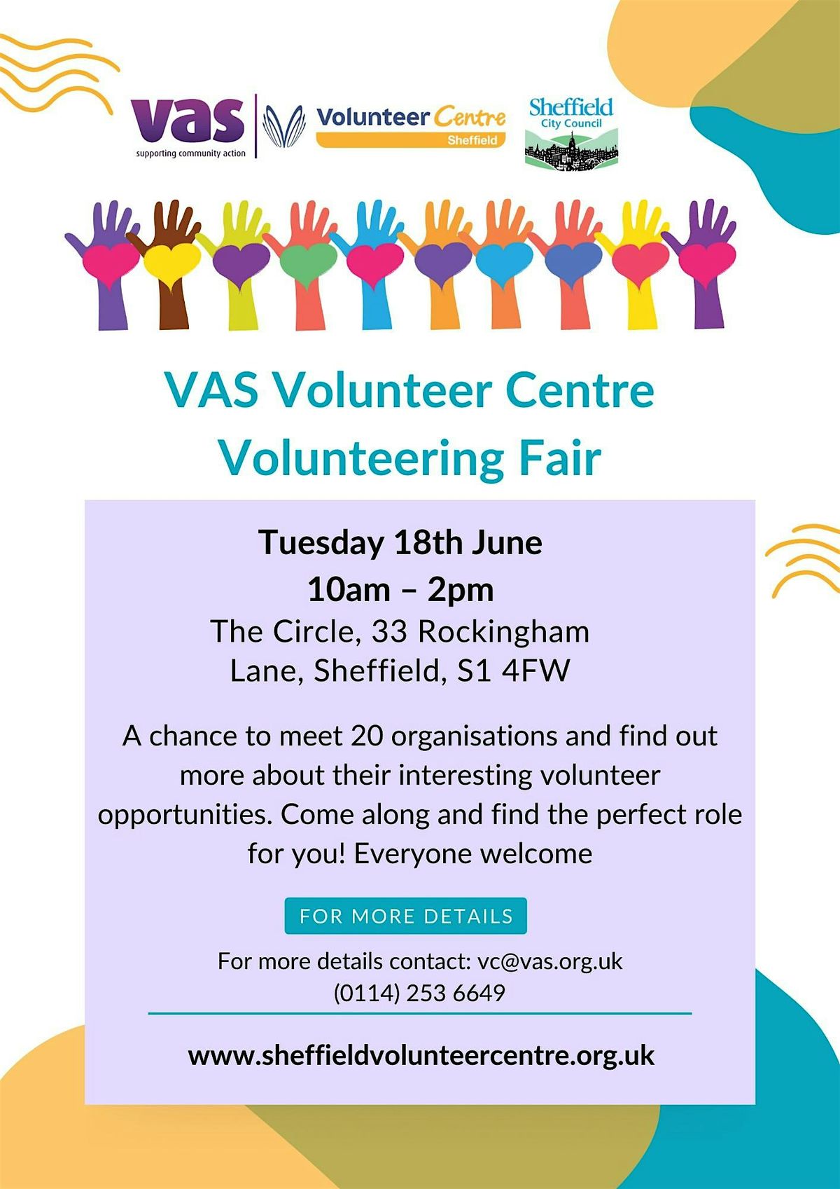 This event will be a great chance to chat to 20 local organisations about their volunteer opportunities. The Fair will be held at The Circle, 33 Rockingham Lane, Sheffield, S1 4FW. The venue is fully accesible and everyone is welcome!