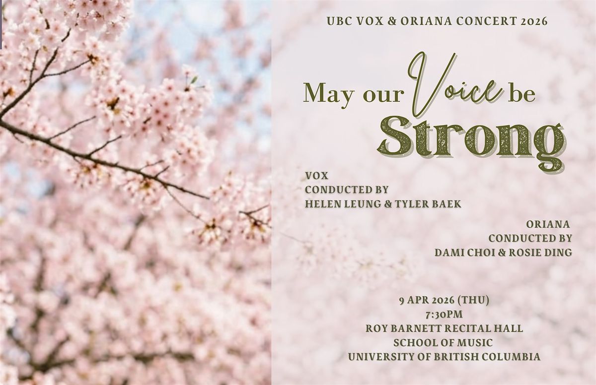 Experience the power and beauty of choral music as UBC’s Vox (lower voice) and Oriana (treble voice) choirs come together!