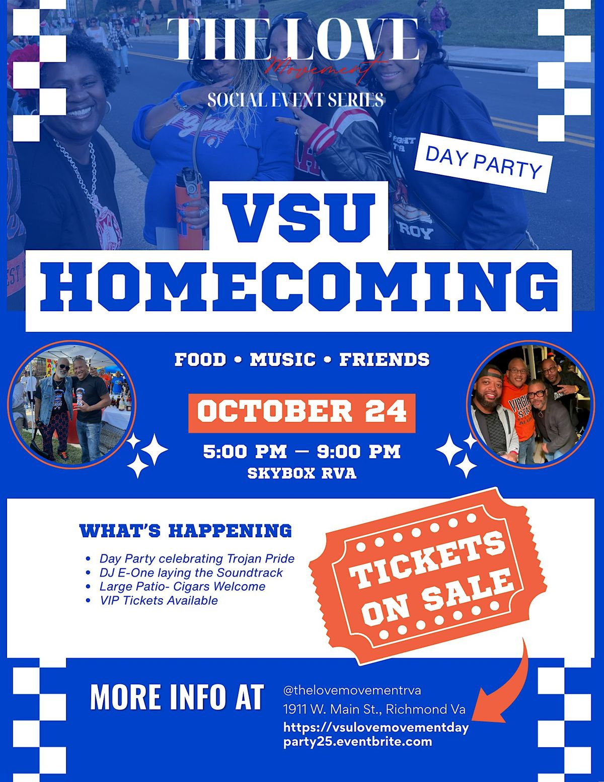 Presented by The Love Movement Social Event Series, this electrifying Day Party celebrates Virginia State University’s legacy of Pride, Unity, and Soulful Energy. Set at the vibrant Skybox Venue, the event pulses with Trojan spirit and Dope Vibes.