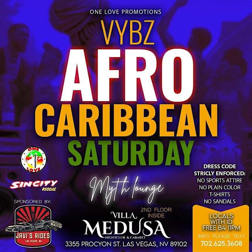 Vybz Afro Caribbean Saturday is located on the 2nd floor in the Myth Lounge.