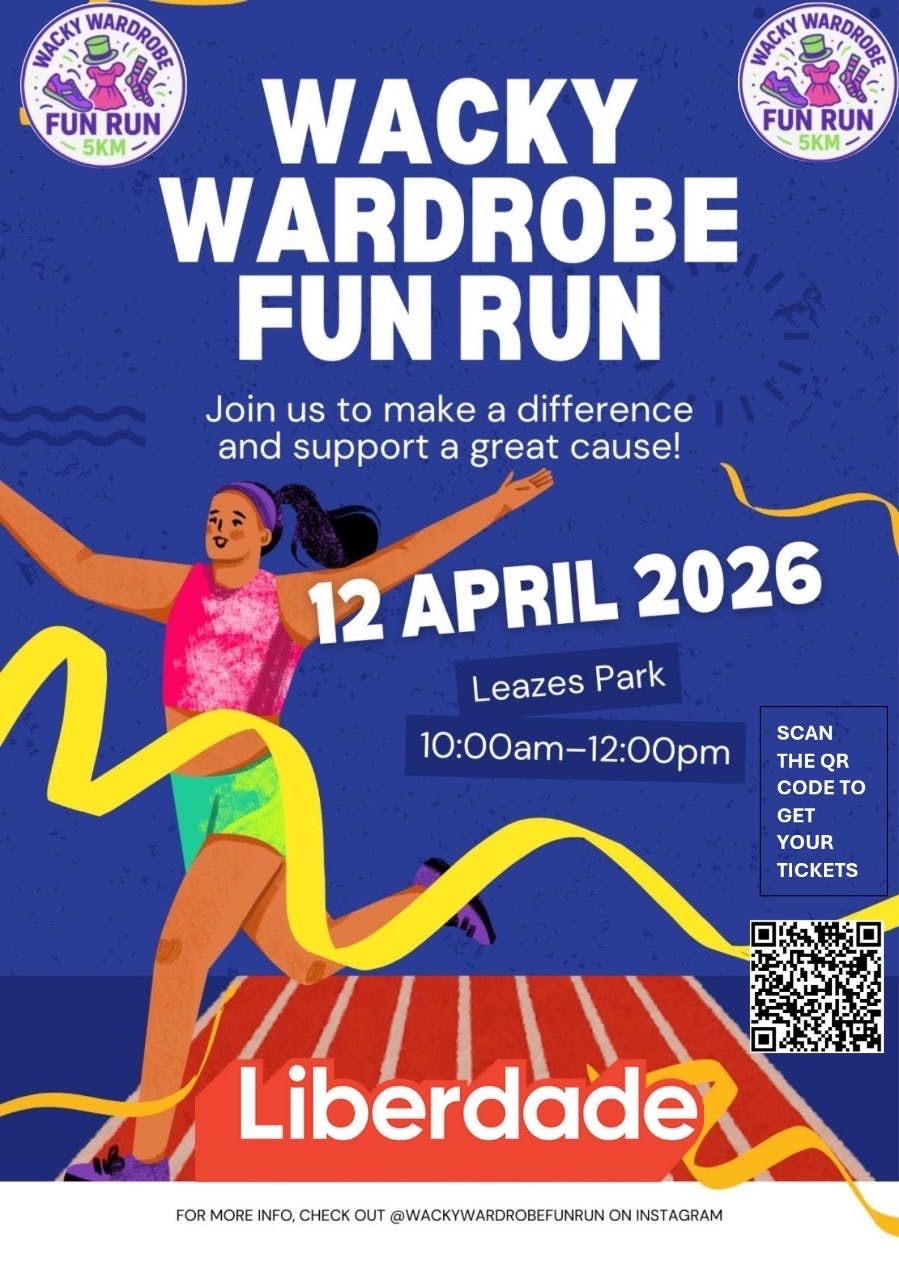 🎉 Wacky Wardrobe Fun Run – 5K! 🎉Join us on 12th April from 10am–12noon for the Wacky Wardrobe Fun Run, a light-hearted 5K where the crazier the outfit, the better! Grab your costume, your friends and family, and run, jog, or walk your way around the course for a morning full of laughs and community spirit.