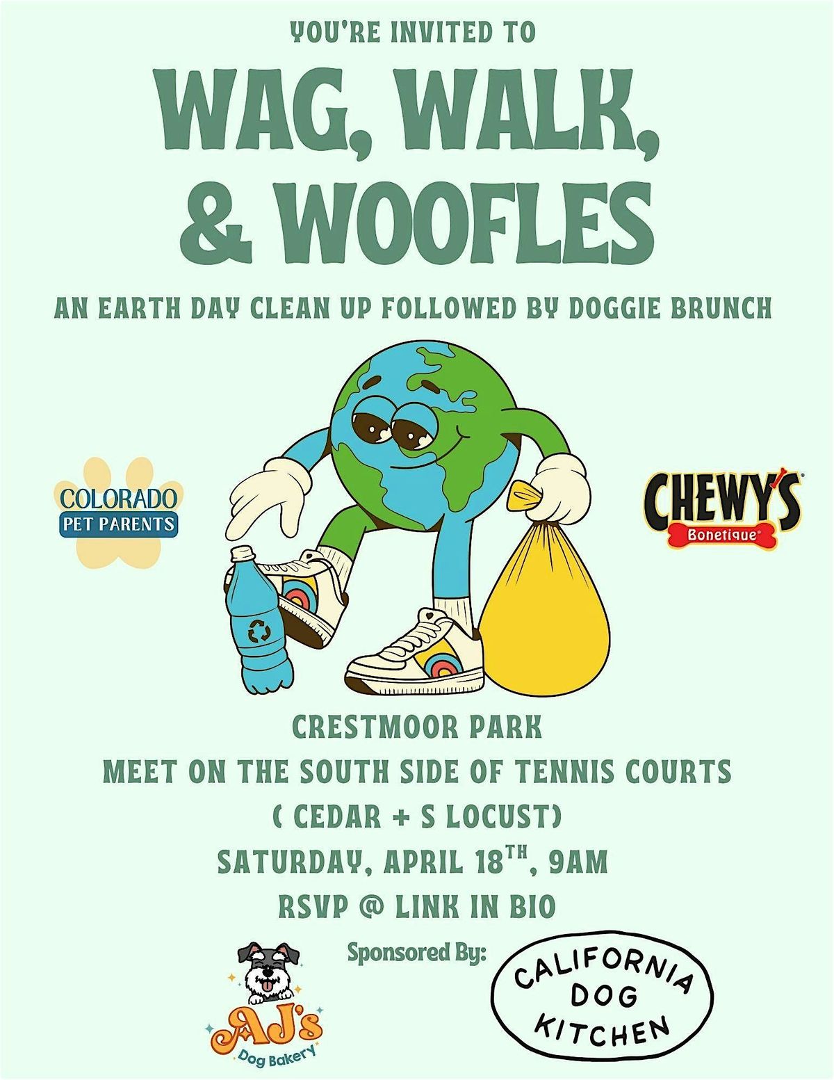 Your RSVP is required so we can provide enough trash bags and gloves. The first 25 to RSVP will get a free pound of California Dog Kitchen food when you join us for doggy brunch at Chewy's Bonetique after the walk.