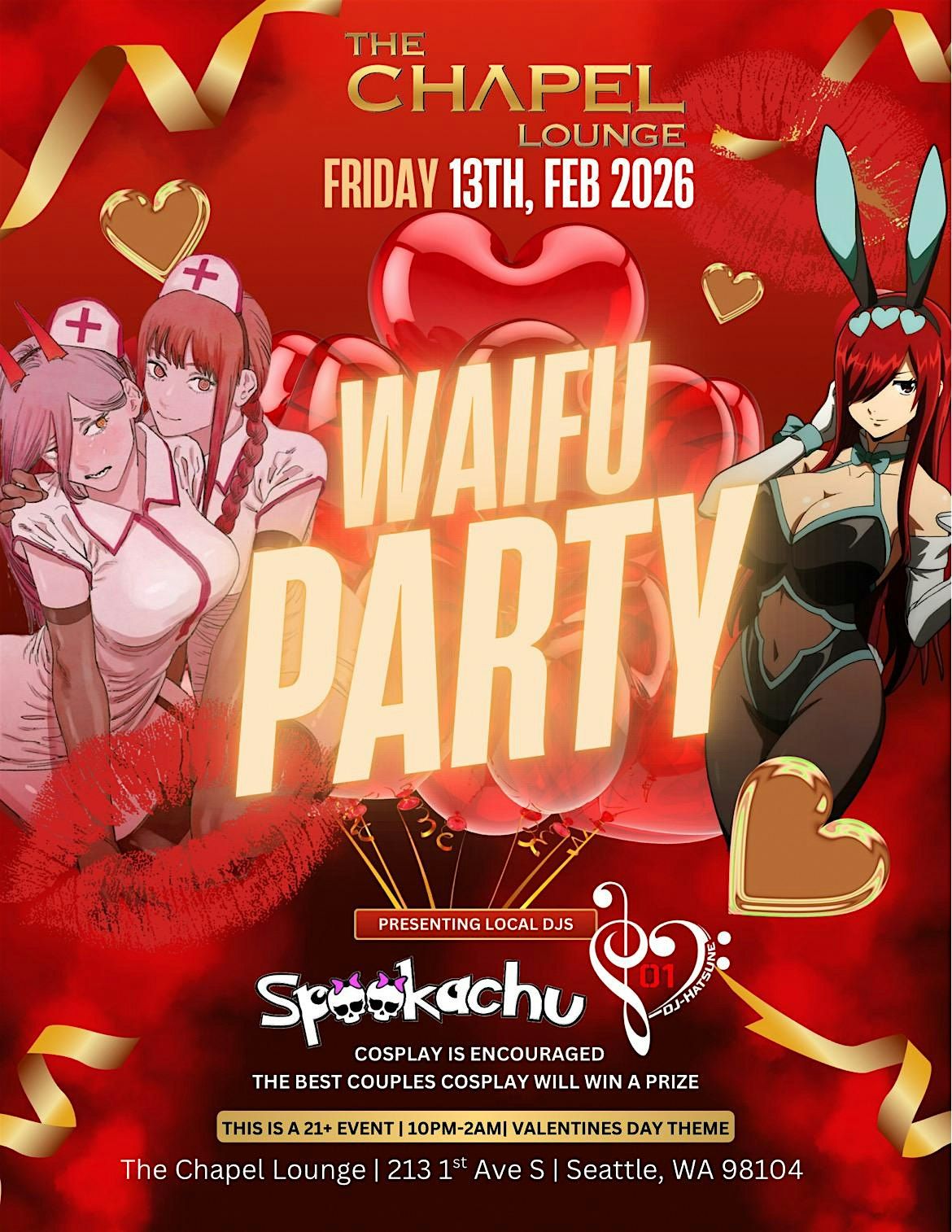 Get ready to celebrate your favorite anime characters at the Waifu Party – it's going to be a night full of fun and surprises!