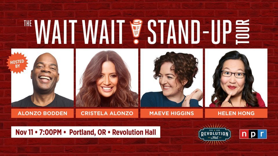 Your host is veteran stand-up and Wait Wait regular, Alonzo Bodden. Joining him in Portland are Cristela Alonzo, Maeve Higgins, and Helen Hong!